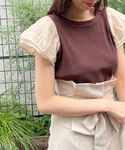 ブラウン、ベージュでまとめた淡色コーデ♡トップスは腕の二重レースで細見え✨パンツはコルセットベルトが取り外し可能で付けると脚長効果◎外すとシンプルなパンツで使えます♪ベルトを通せるのでお持ちのベルトと合わせていただいても◎
