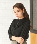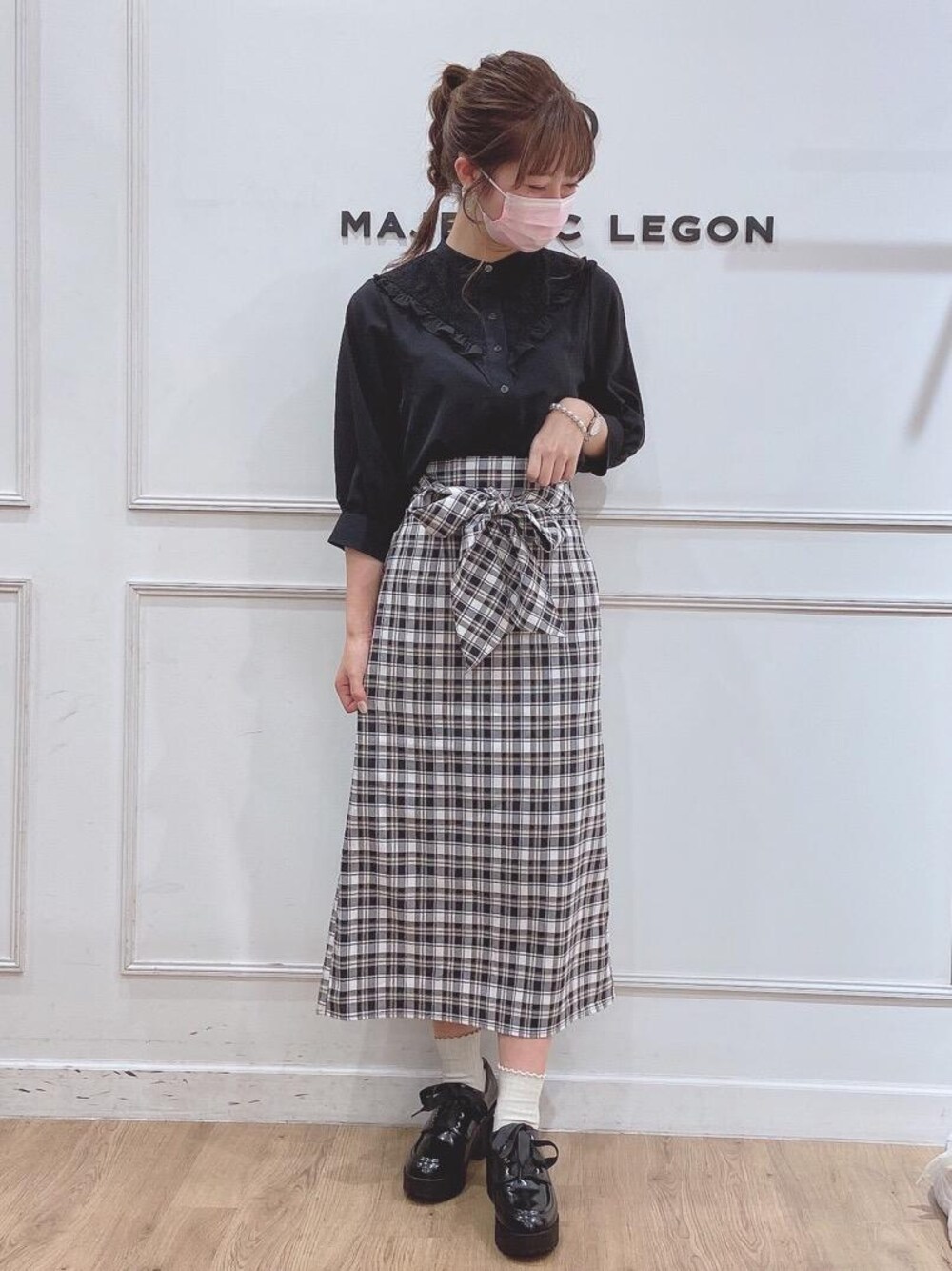 全体をモノトーンでまとめたclassical ladyコーデ♡首元のレースが上品なブラウスにウエストリボンがポイントのIラインスカートを合わせて大人かわいいコーデに✨リボンは前で結んでも後ろで結んでも取り外してもかわいい🎶
