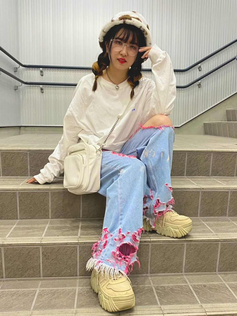 NATSUKAのデニムパンツ「little sunny bite LSBダメージデニムワイドパンツ LPT-170H made in JAPAN」を使ったコーディネート