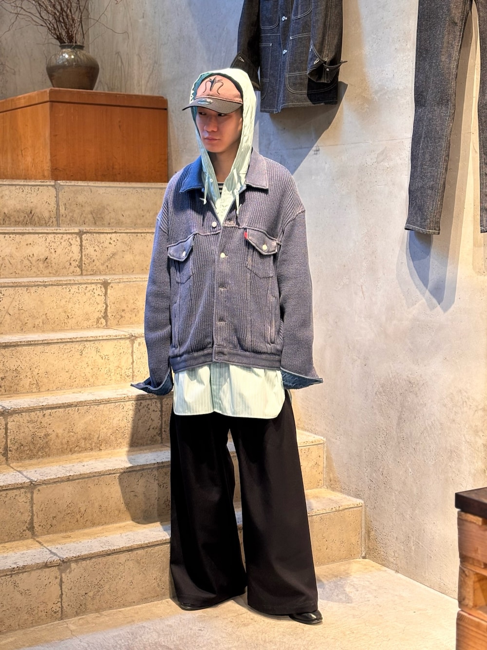 中原大地【吾亦紅】(吾亦紅 WARE-mo-KOU店)のスラックス「Toironier/トワロニエ/STA-P 2Tuck Side Tuck Pants」を使ったコーディネート