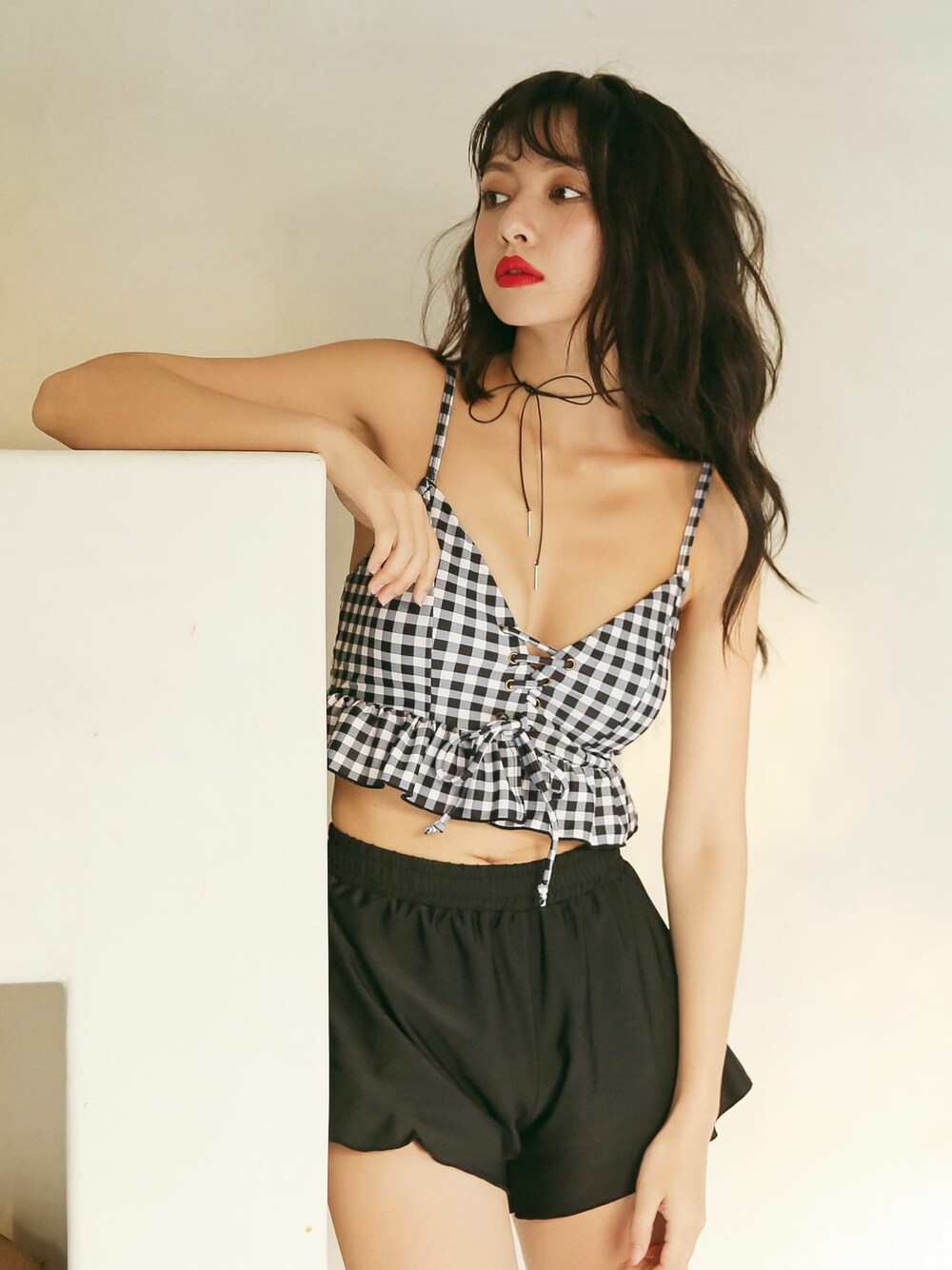 Ditaの水着「【3点セット】編み上げビスチェビキ二 ワンピース 体系カバー【RT】」を使ったコーディネート