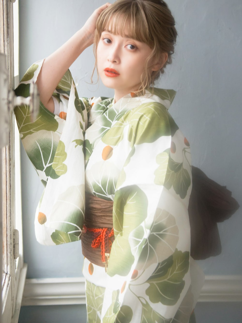 Ditaの浴衣「1人で着られる浴衣5点セット (ゆかた・しわへこ帯・下駄・着付け本・腰ひも)【W】」を使ったコーディネート