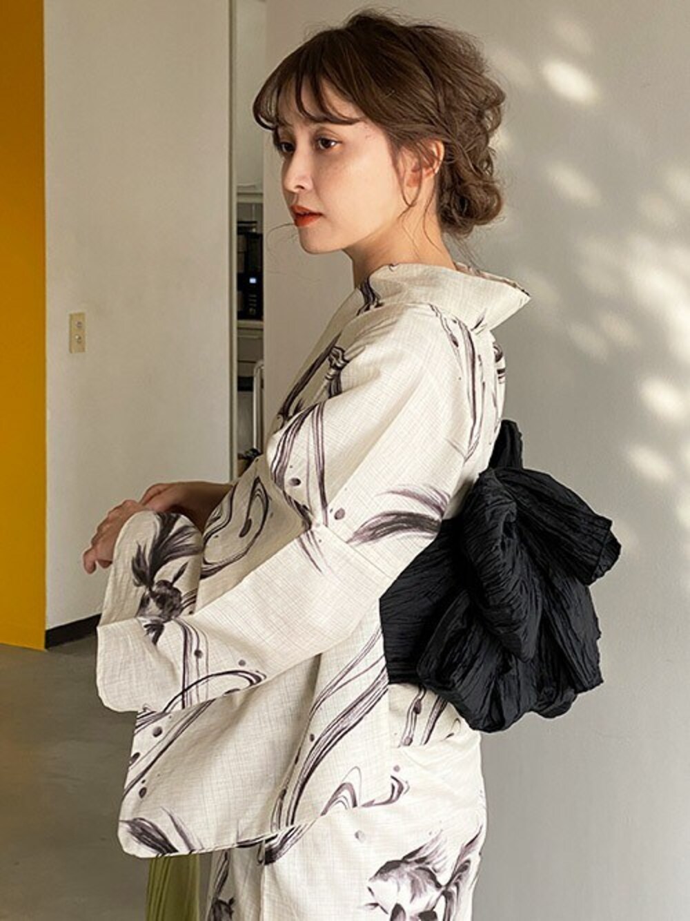 Ditaの浴衣「1人で着られる浴衣5点セット 和歌山染工日本染め(ゆかた・しわへこ帯・下駄・着付け本・腰ひも)【K】」を使ったコーディネート