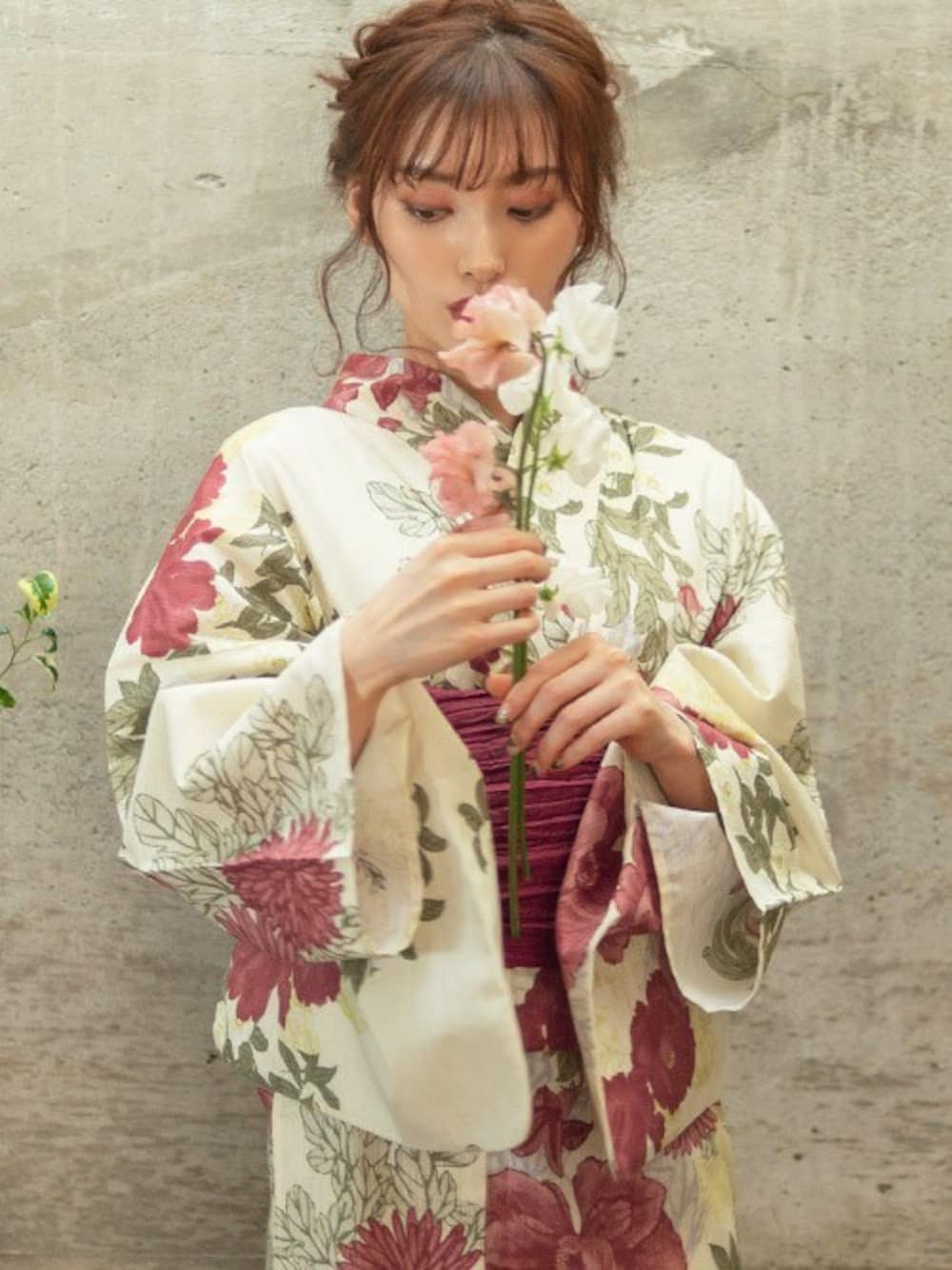 Ditaの浴衣「1人で着られる浴衣5点セット 和歌山染工日本染め(ゆかた・しわへこ帯・下駄・着付け本・腰ひも)【K】」を使ったコーディネート