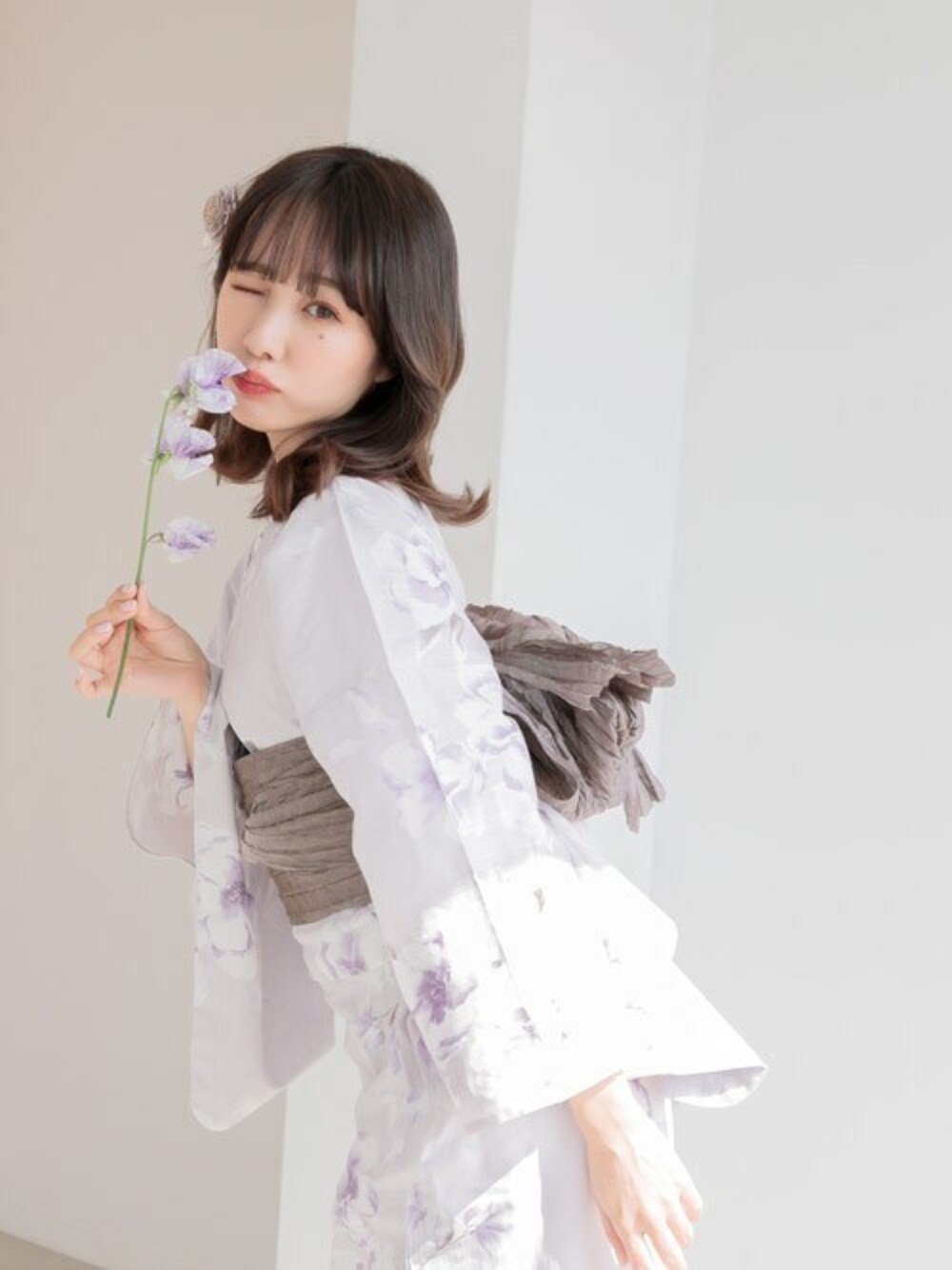 Ditaの浴衣「1人で着られる浴衣5点セット 和歌山染工日本染め(ゆかた・しわへこ帯・下駄・着付け本・腰ひも)【K】」を使ったコーディネート
