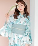 Ditaの浴衣「1人で着られる浴衣5点セット 和歌山染工日本染め(ゆかた・しわへこ帯・下駄・着付け本・腰ひも)【K】」を使ったコーディネート