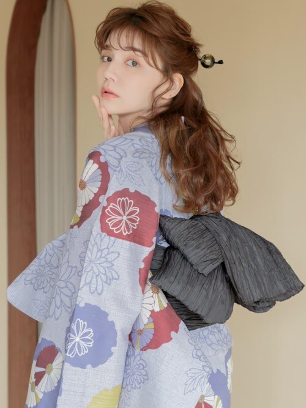 Ditaの浴衣「1人で着られる浴衣5点セット 和歌山染工日本染め(ゆかた・しわへこ帯・下駄・着付け本・腰ひも)【K】」を使ったコーディネート