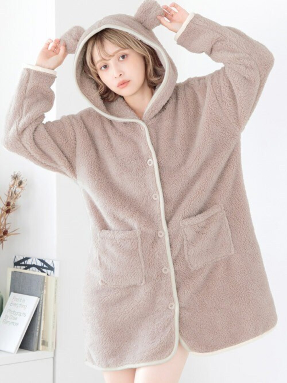ブラウン系のルームウェア/パジャマを着用したレディースの秋コーディネートの1枚目の写真