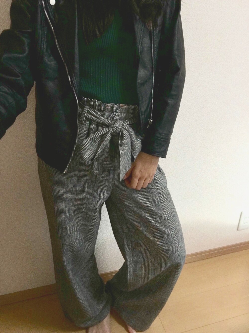 今年流行りのグレンチェック!! 上はライダースとニットで合わせました🖤💚 これにベレー帽とかも全然あう!!