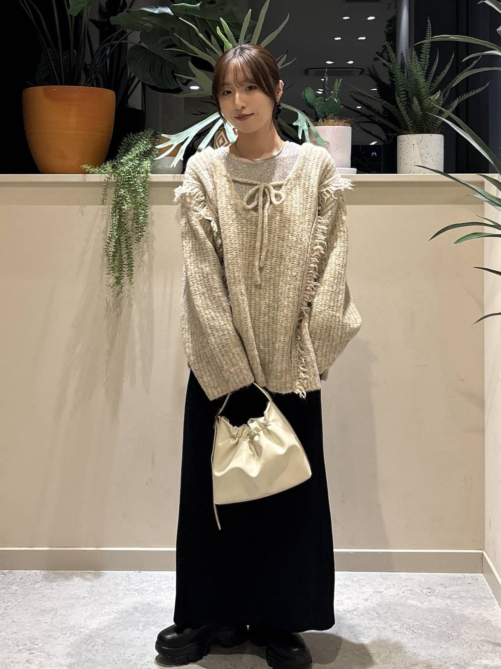 今年も大人気のフリンジニット! ゆるっと着れるのでタイトめスカートと相性抜群です✨️ 私はアイボリーリアルバイしてます☺️ インスタもフォローお待ちしてます︎💕︎→