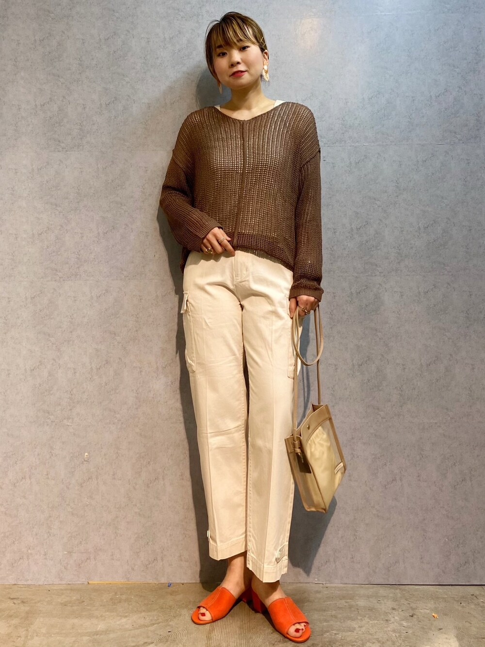 ワントーンオトナカジュアルコーデ◎少しはやめの秋まで使えそうなカラーリングでコーデを組みました🥰❣️レイヤードメッシュ編みニットはタンクトップとセットアップ💕インナーを変えてもお使いいただける万能アイテム😍😍ホワイトのカーゴパンツはカジュアルにもキレイ目にも着回しのバリエーションが多い優秀アイテムです🥰ぜひ一度ご覧になってみてください💟💟💟 インスタグラム ogasan_07