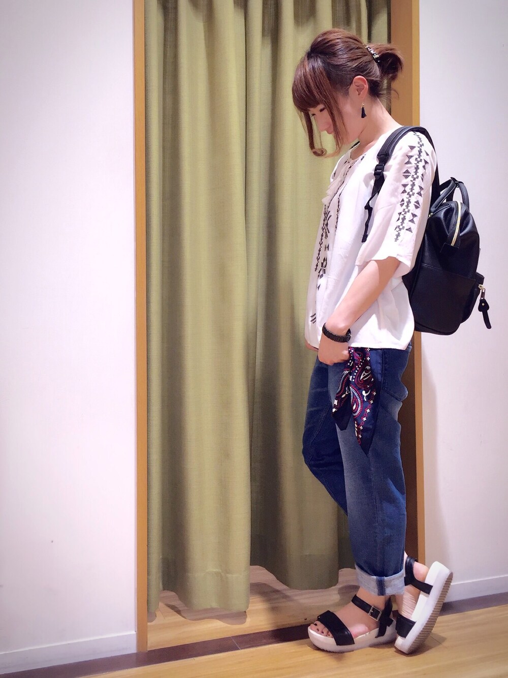 Uのシャツ/ブラウス「◆刺しゅうスモックブラウス」を使ったコーディネート
