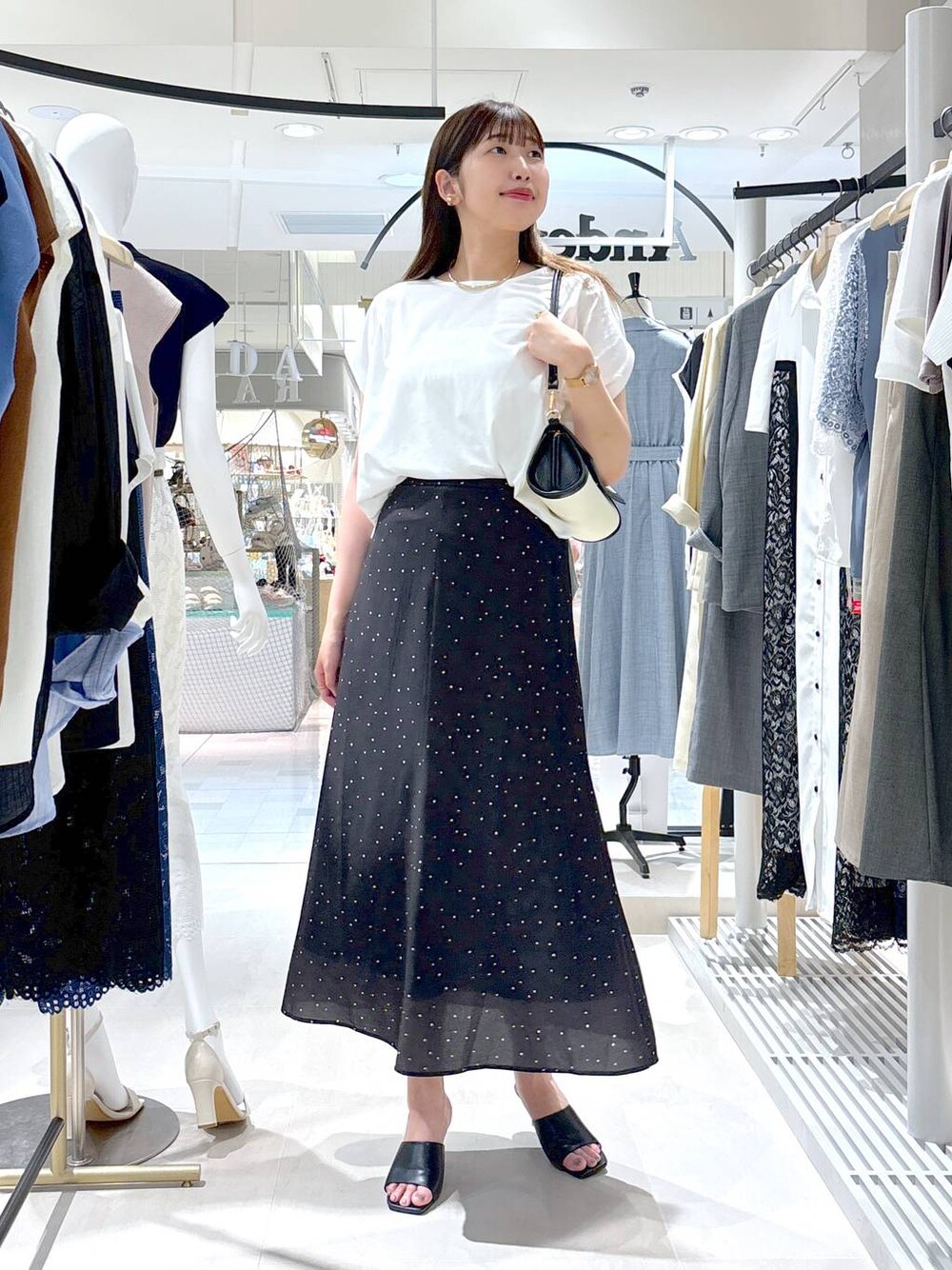 ご覧いただきありがとうございます! リアルバイコーデです! ・カットソー 夏に嬉しい機能つきのコクーンシルエットカットソー♡ シンプルなのにおしゃれ見えするゆるっと感あるコクーンシルエットがポイント◎着痩せ効果あり! 前だけインでスッキリと、アウトスタイルでゆるっとでも可愛いです☺︎ オフをリアルバイしました♡ ・スカート 広がりすぎず上品に揺れるナロースカート♡ 落ち感のある凹凸素材でラインを拾わず、美シルエットが叶います! 丈感はやや長めで、高身長さんにもおすすめです◎ Mサイズをリアルバイしました☺︎ ・ご質問はお気軽に店頭でお声がけいただくか、店舗までお問い合わせくださいね♪