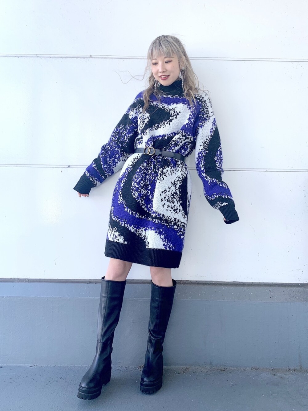 migeru(PAGEBOY 本部)のワンピース「マーブルジャガードニットワンピース」を使ったコーディネート