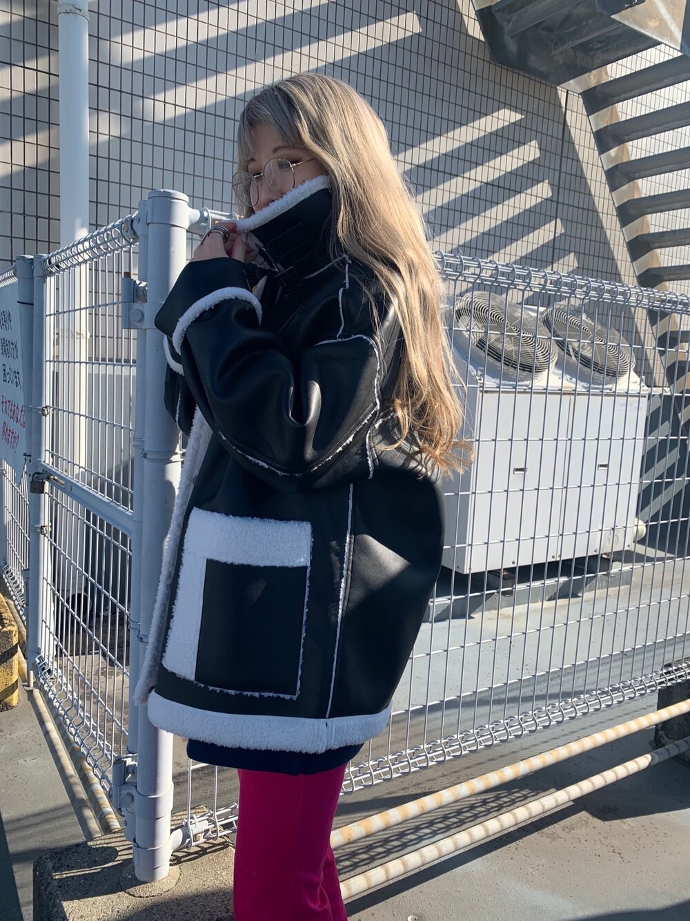 migeru(PAGEBOY 本部)のブルゾン「フェイクレザーB-3ブルゾン」を使ったコーディネート