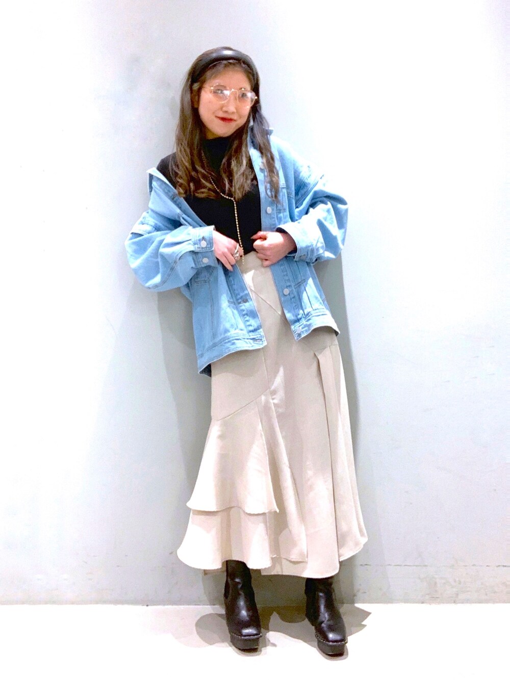 migeru(PAGEBOY 本部)のデニムジャケット「ウイングショルダーGジャン」を使ったコーディネート