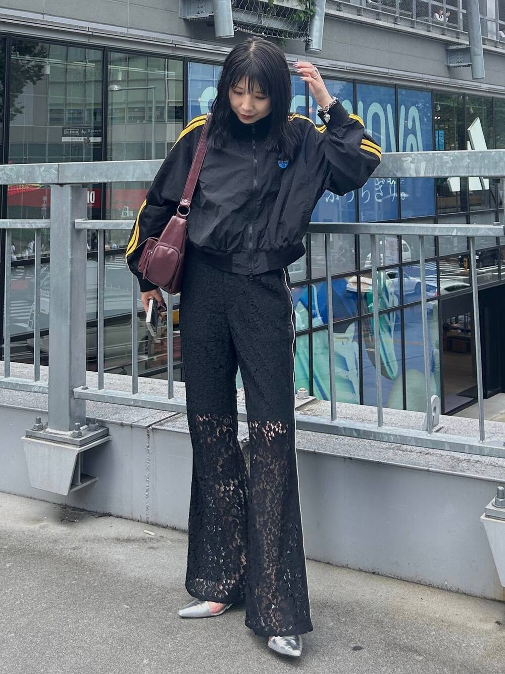 \NASA special edition🚀/ オールブラックで合わせてみた🙆 カジュアルなアイテムも可愛らしさのある レースアイテムと合わせて外してみるのも相性◎ 足元はシルバーで合わせるとバランス感とれます!