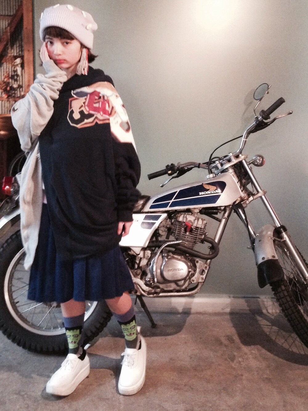 ニット帽↪️candy stripper イヤリング↪️noi アウター↪️Nozomi Ishiguro スカート↪️comme des garçons ソックス↪️TOPMAN くつ↪️Belly Button