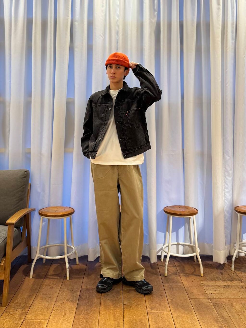 ご覧いただきありがとうございます^^ 今回はリーバイスのデニムジャケットを着用しました✨️ デニムジャケット×チノパンの組み合わせは、 カジュアルながらも大人っぽくまとまる万能スタイルです🥰 FORK & SPOONのチノパンは、シルエットも綺麗で、とっても履きやすい◎ サイズ5を履いて、裾にルーズさを持たせました! オレンジのビーニーをアクセントにすることで、シンプルながらも個性のある着こなしに🍊 春先にはピッタリなスタイリングです✨ ぜひお試しください‼️
