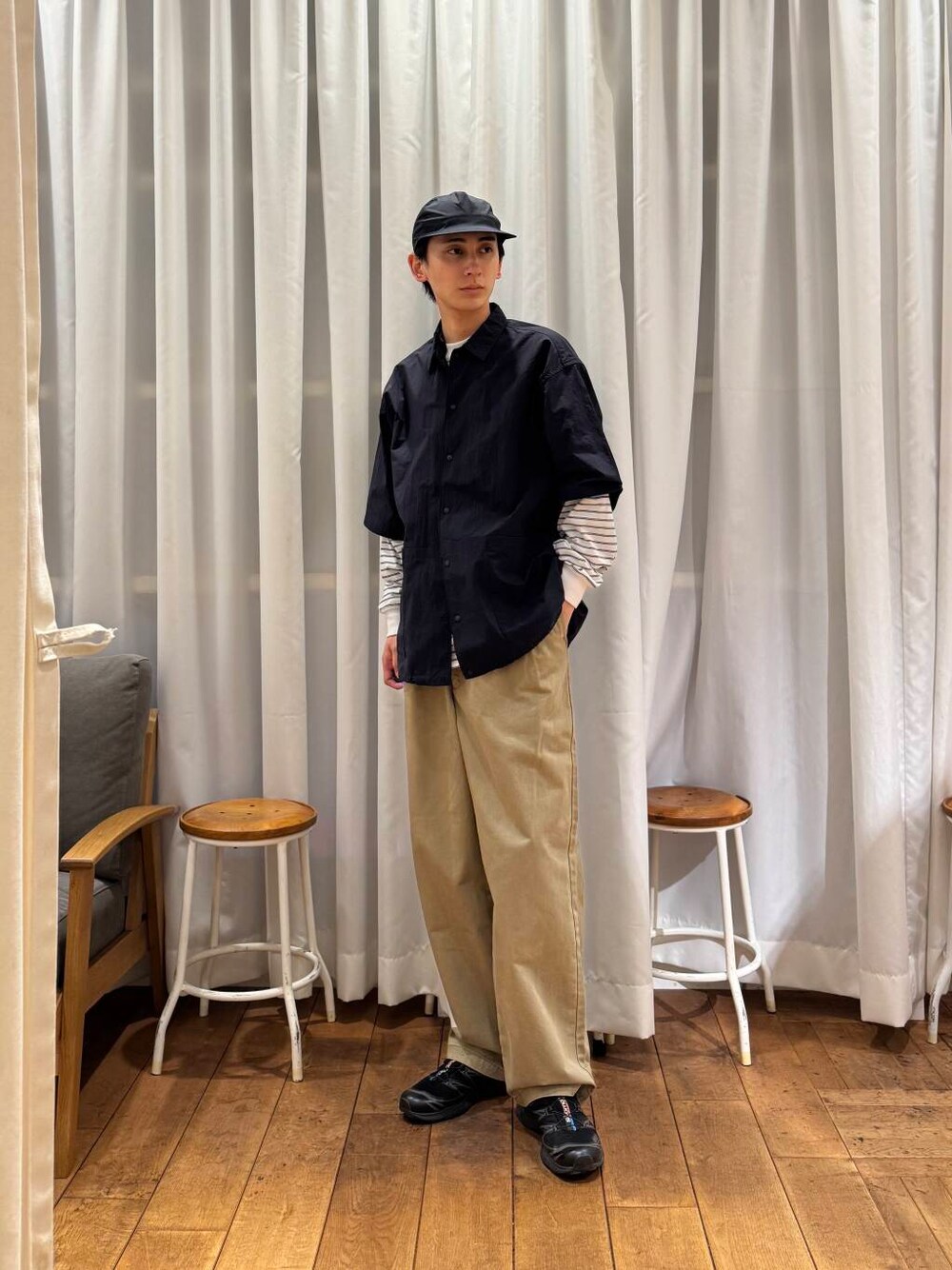 ご覧いただきありがとうございます^^ 今回は、EKALのナイロンタッサーショートスリーブシャツを着用しました✨️ インナーにFORK & SPOONのボーダーTをレイヤードさせて、カジュアルに☺️ 春らしくベージュのチノパンで合わせました🌸 ぜひお試しください‼️