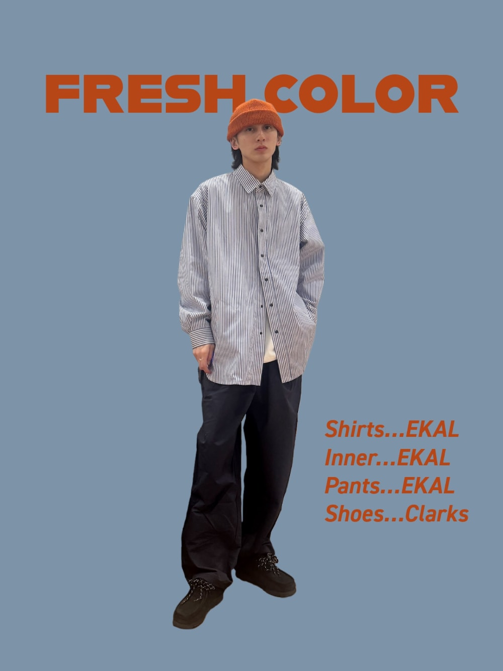 ご覧いただきありがとうございます^^ EKALの新作、春らしい爽やかな青のストライプシャツです👔 EKALらしいアウトドア感を残しつつ、青とオレンジで爽やかさもプラス✔︎︎︎︎ シャツのボタンスナップがアクセントになっててとっても可愛いです‼️ ぜひお試しください✨
