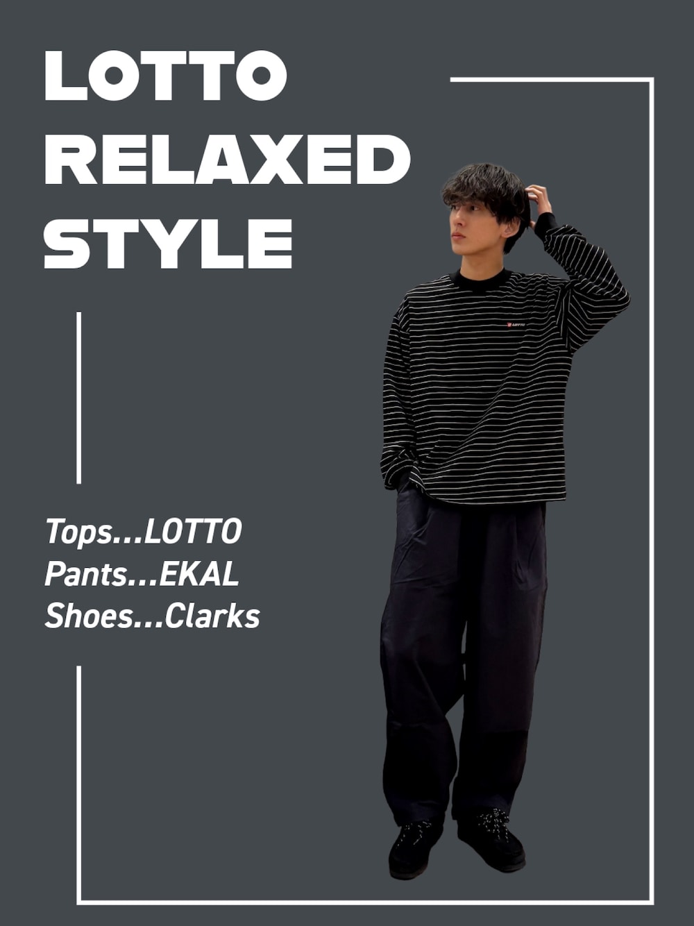 ご覧いただきありがとうございます^^ LOTTOの春の新作ボーダーTを着用しました✨️ 首元や袖の黒のリブも可愛く、LOTTOのロゴがアクセントになってます✔︎︎︎︎ EKALのナイロンパンツと合わせてラフにゆったりとしたスタイリングに仕上げました‼️ ぜひお試しください✨️