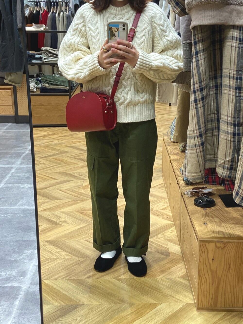 a.p.cのハーフムーン、 freaksstoreのフィッシャーマンニット、 古着のベイカーパンツ の 好きなもの詰め込んだコーデ〰💭 ♡や⊕、ありがとうございます✌︎