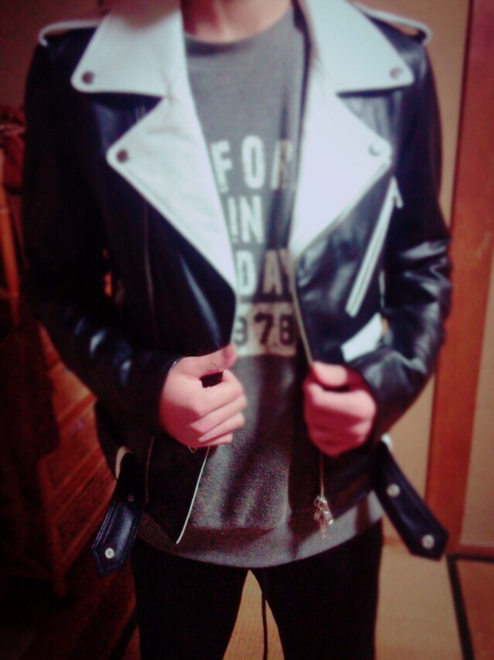 暇だったんでパジャマとライダースを合わせみました笑笑笑笑