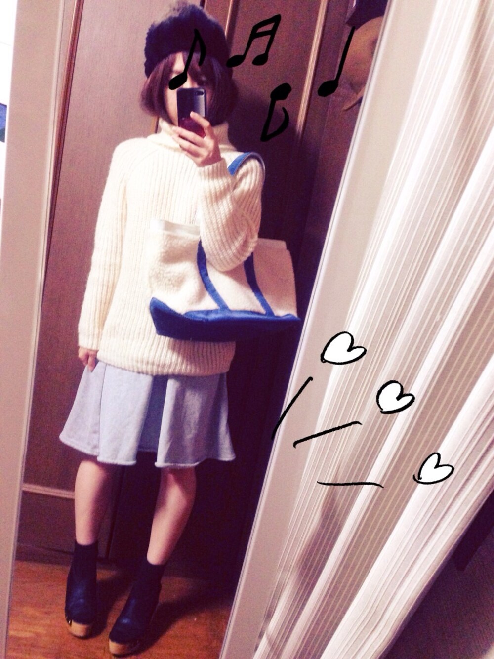 トップス:Forever21 帽子:カシラ Foreverのざっくりタートルネックニットをゆるーく着ました 帽子は、頭のてっぺんがグレー!グレー×白好き♡ 短足コーデ(゚∀゚)