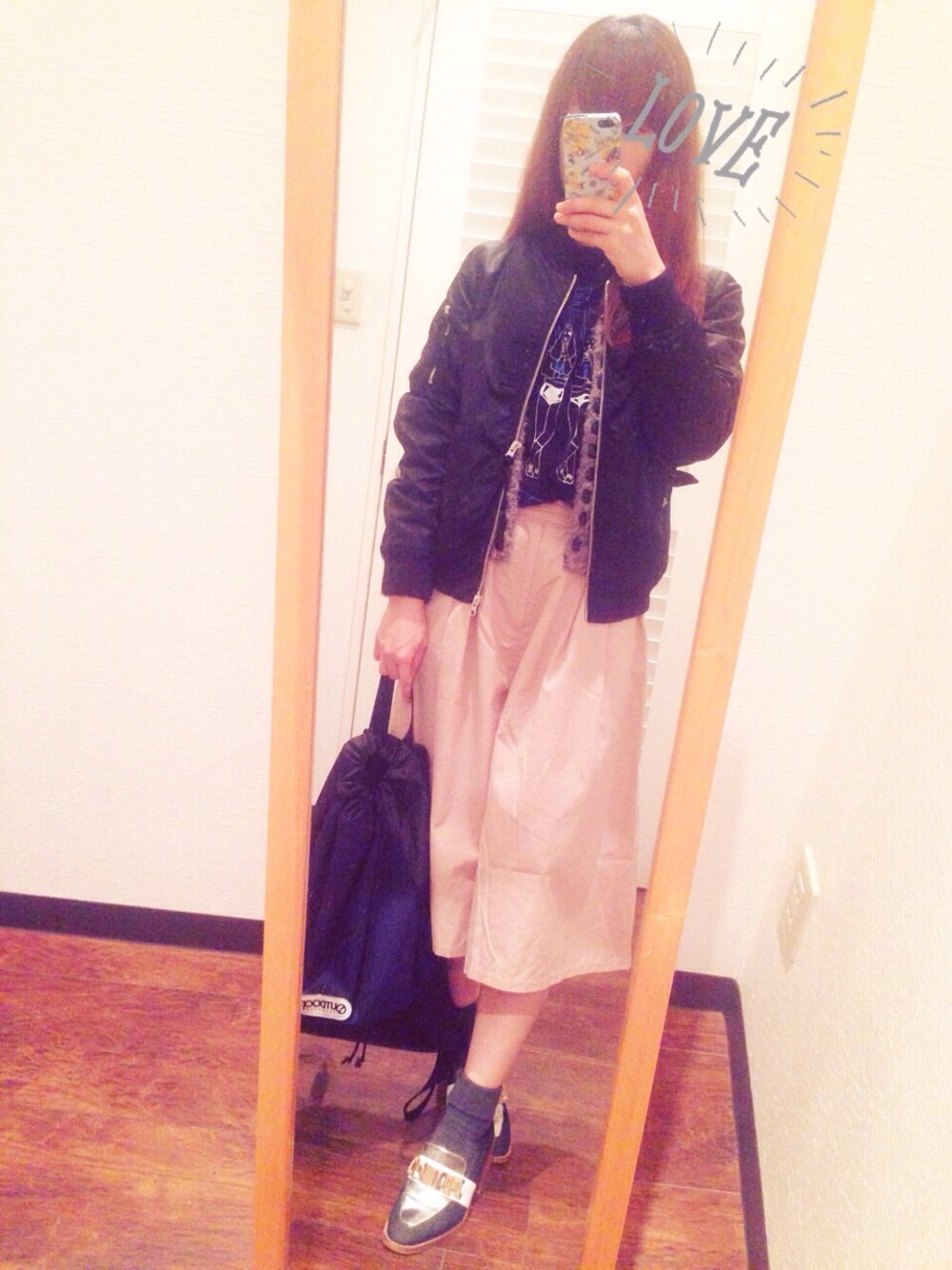 遅ばせながらMA-1デビュー(*-∀-*) 薄手だからこれからいっぱい着れる♡ 春だけど黒着たい。ネイビー進められるし黒のアウター少ないけど黒着たかったの!