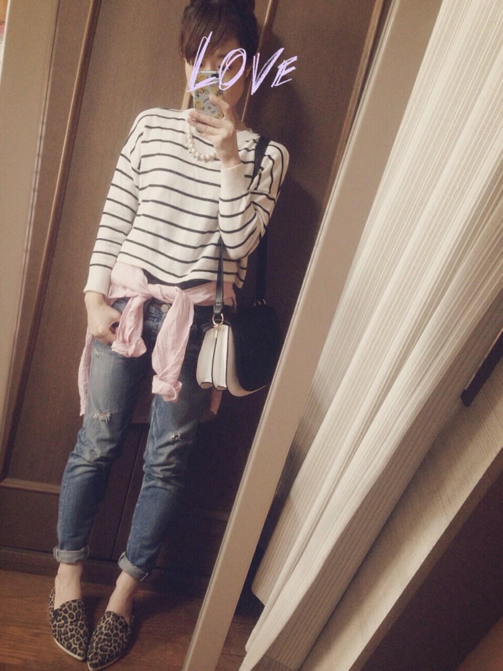 腰巻シャツ:ユニクロ バッグ:H&M ボーダーってかぶる確率高いけど、やっぱ着たくなっちゃうなー(´ω`) やっと足首出せる季節くるーー(*-∀-*) 腰巻も秋ぶりでなつかしやー 白のボーダーとピンクのリネンシャツで爽やかに。