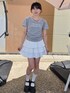 フリルスカートと合わせて甘めガーリーコーデ🌷 サイドギャザーとクロスネックがトレンド感満載です◎ どんなボトムとも相性抜群なので1枚持っておくと夏に大活躍します👀✨