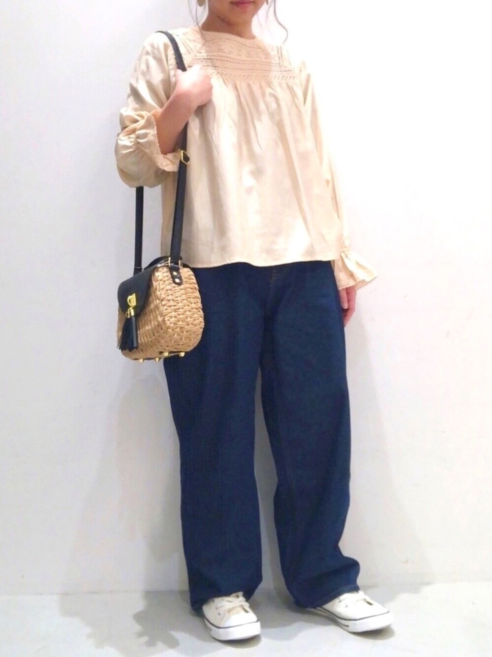 ご覧頂きありがとうございます😊 ブラウス×ジーンズでカジュアルスタイル!お店のスタッフが私をイメージしてコーディネートしてくれたものです♡かわいい! ジーンズのシルエットがとてもお気に入りで、名前の通り外側にカーブがかかった広がりがあるパンツなのでラフな着こなしにしてくれます。生地も伸縮性があり歩くのがとっても楽チン✨ お散歩やちょこっとお出かけするとき、お家にいる時など気取らないお洒落なグッドコーディネートです👌♡