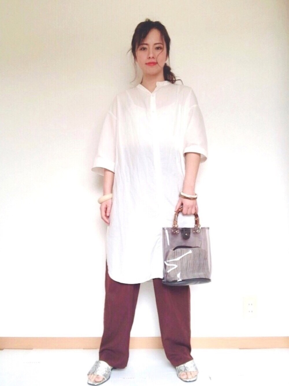 たろさんのシャツワンピース「タイプライターバンドカラーシャツワンピース」を使ったコーディネート