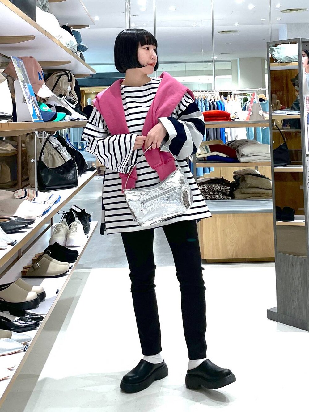 ウノ(LEPSIM 本部)のハンドバッグ「フェイクレザーミニバッグ 103810」を使ったコーディネート