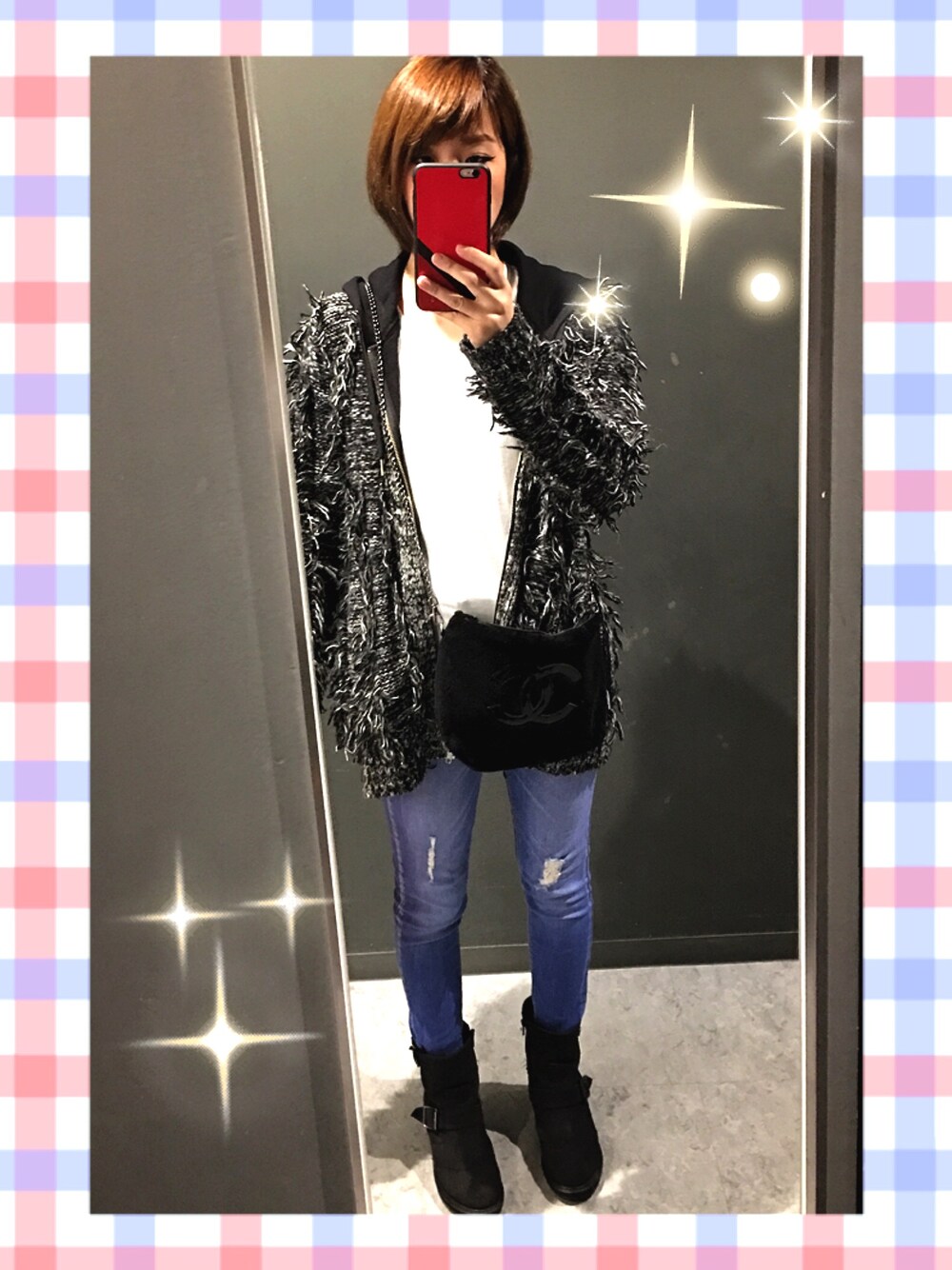冬イメージ✨毛の長いカーディガンで見た目から暖かコーデ⛄ わりとどんなスタイルにも合わせやすい😊💕