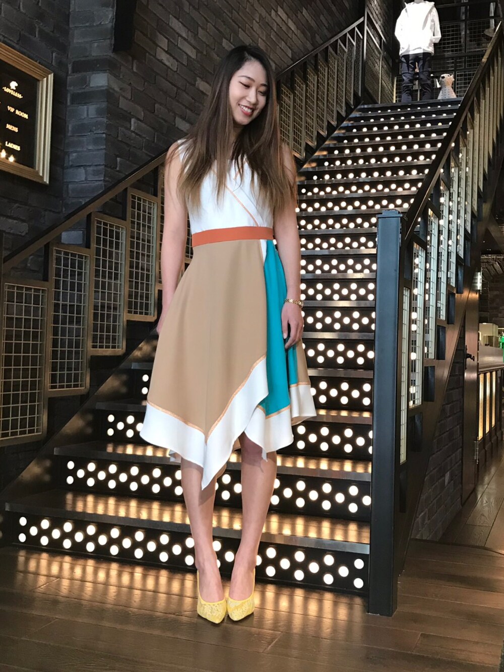 maのワンピース「【LOVELESS】WOMEN アシンメトリーカラーブロックドレス」を使ったコーディネート