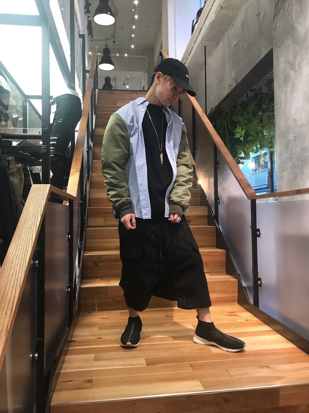 yoshiaki matsufujiのシャツ/ブラウス「HBNS / ハバノス / FLIGHT SLEEVE SHIRT」を使ったコーディネート