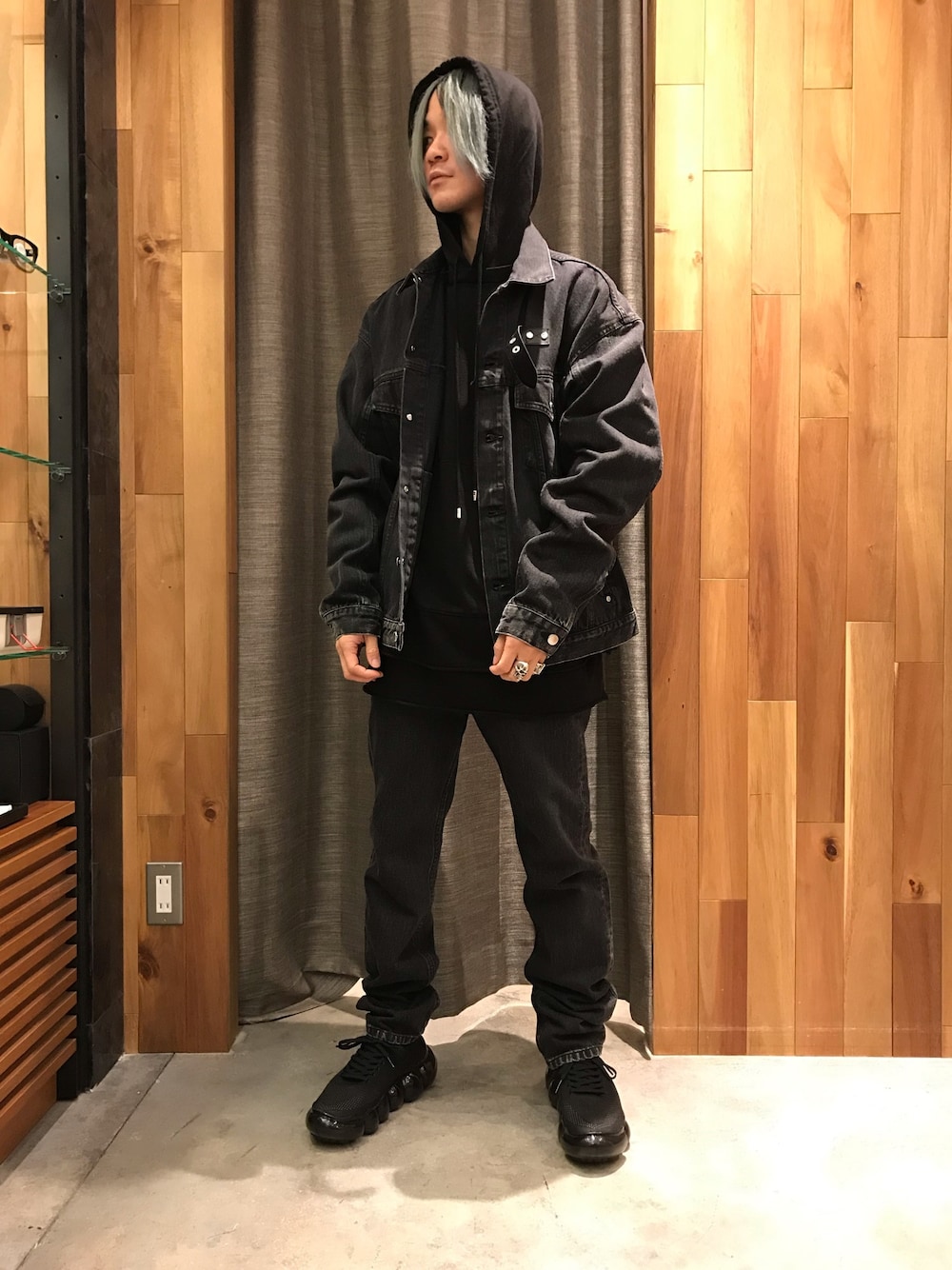 yoshiaki matsufujiのブルゾン「JOHN LAWRENCE SULLIVAN/ジョンローレンスサリバン/BELTED DENIM JACKET」を使ったコーディネート