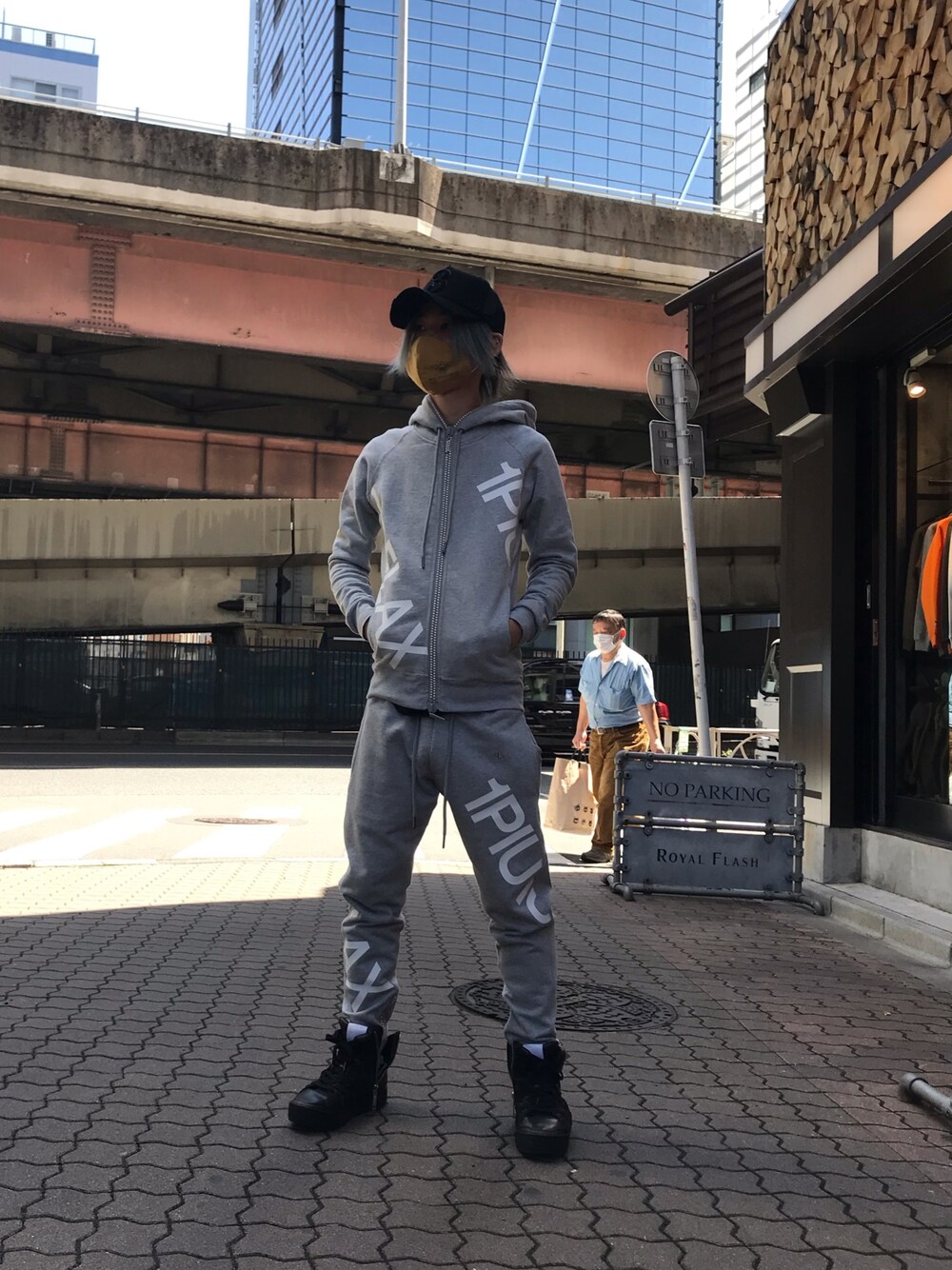 yoshiaki matsufujiのパーカー「【別注】1PIU1UGUALE3 RELAX/ウノピゥウノウグァーレトレ リラックス/ダイアゴナルロゴプリントラインストーンジップパーカー」を使ったコーディネート