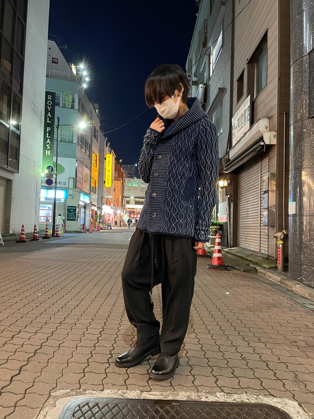 yoshiaki matsufujiのパーカー「【別注】ARMURE/アルミュール/indigo cable knit parka/インディゴケーブルニットパーカー」を使ったコーディネート
