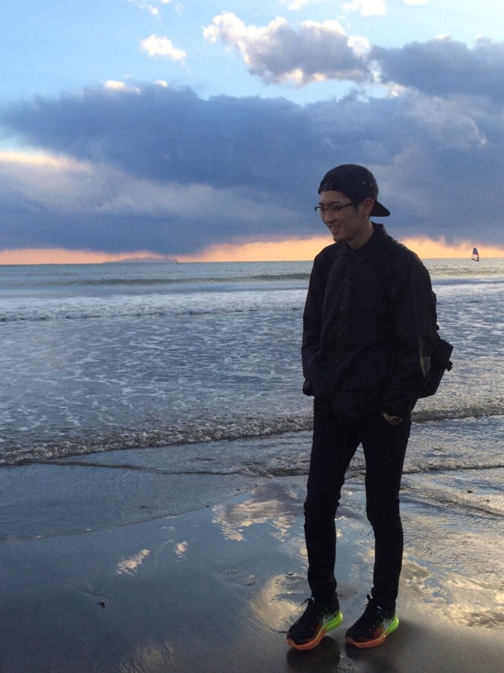海綺麗だなー 日が落ちかけの海も綺麗ですよね 久々のオールブラックコーデです。 落ち着きます。