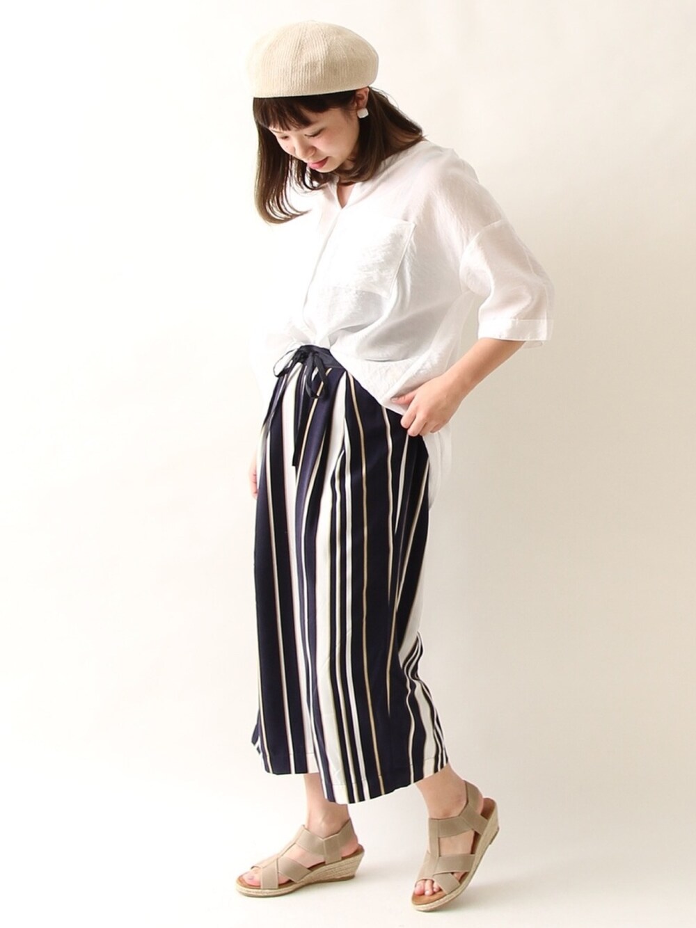 てらさわ(coen)のその他パンツ「レジメンタルストライプクロップドパンツ」を使ったコーディネート