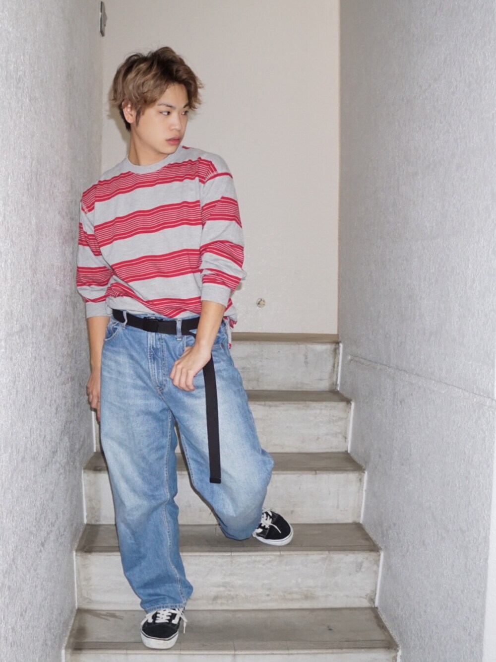 河崎良侑(りょう)のTシャツ/カットソー「T/Cインレイボーダー長袖T/738791」を使ったコーディネート