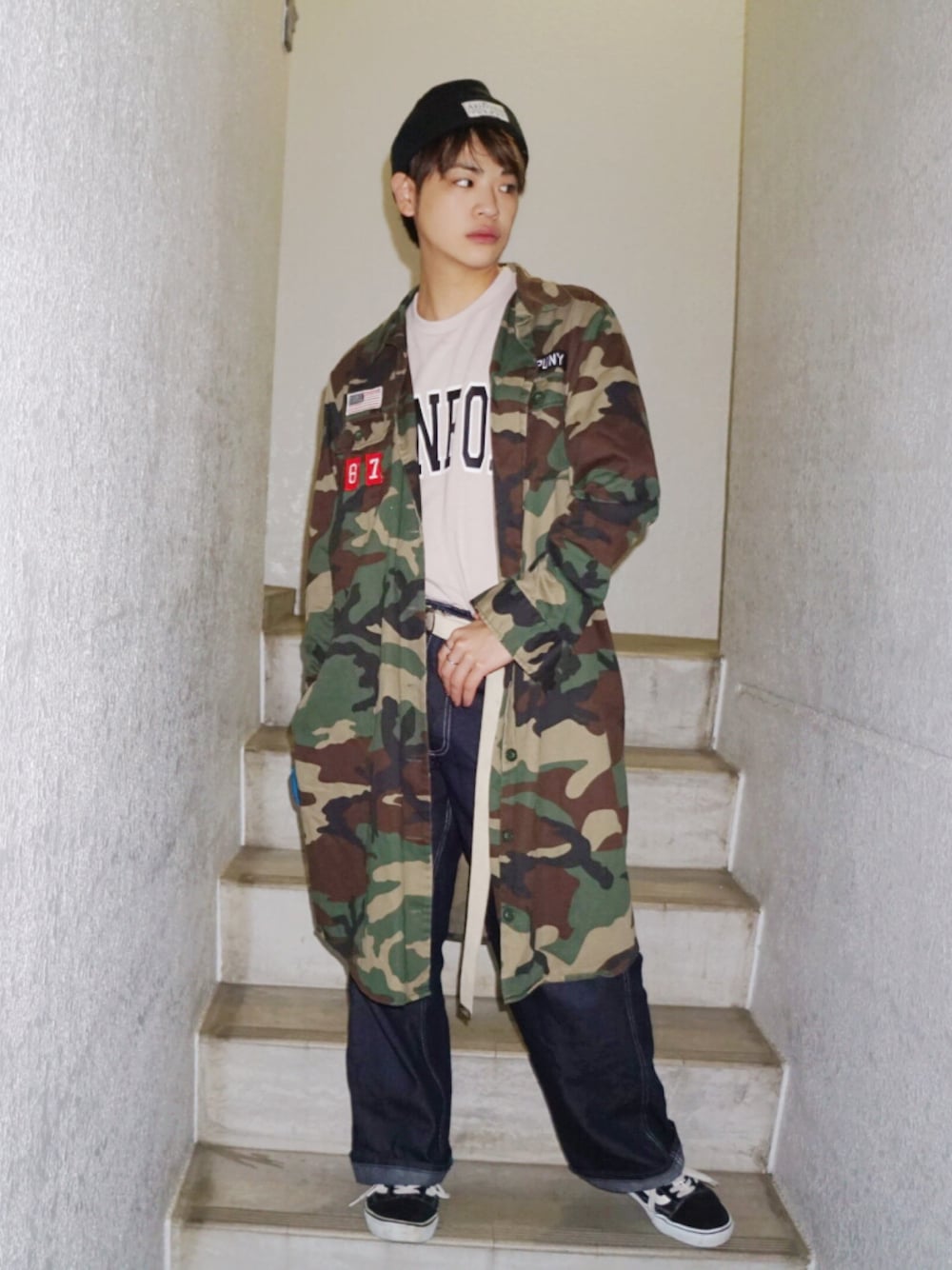 河崎良侑(りょう)のニットキャップ/ビーニー「オリジナルス ニットキャップ [BEANIE BADGE]」を使ったコーディネート