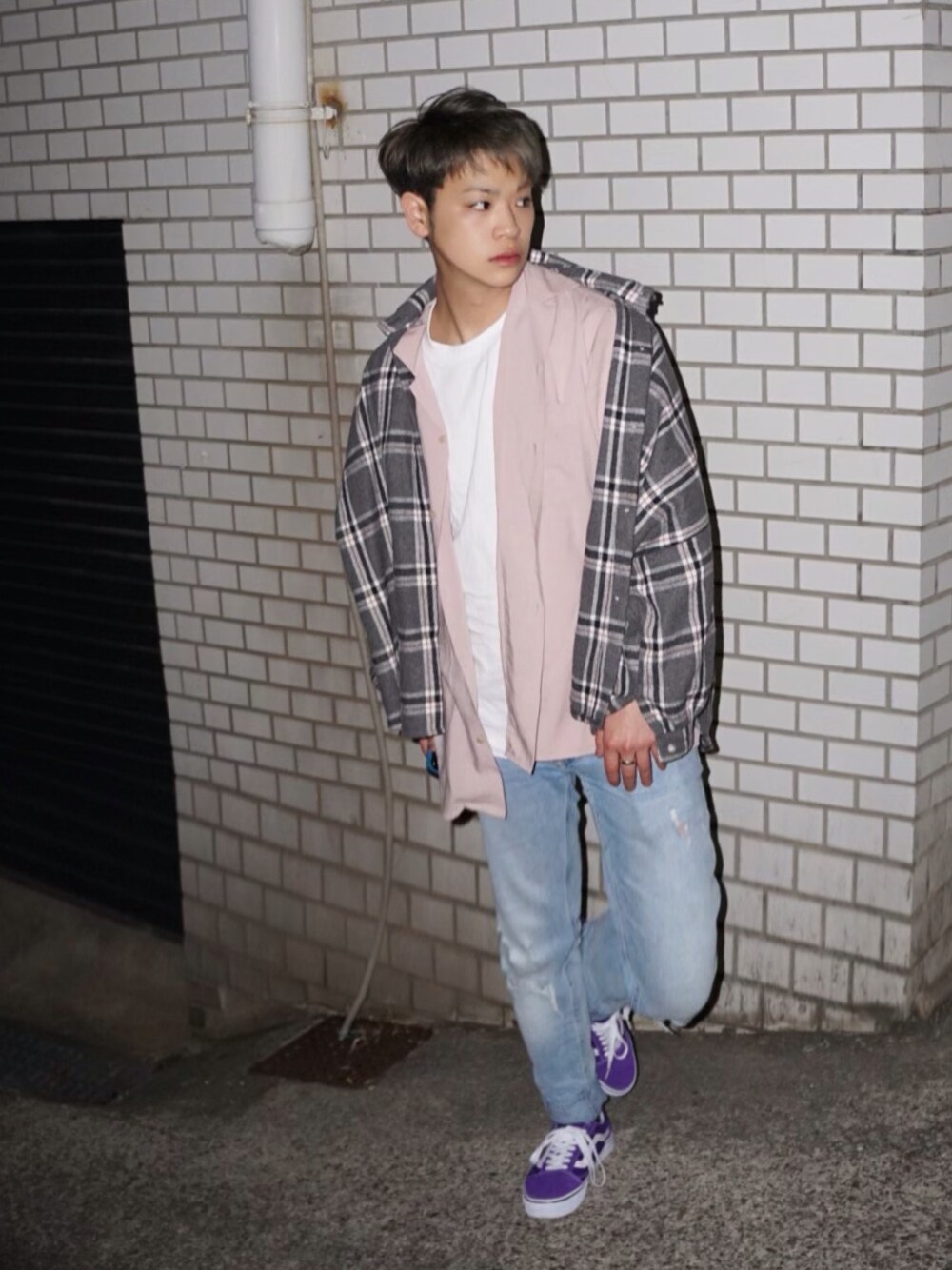 こんばんは👍 いつも見て下さってる方、 初めましての方、 見ていただきありがとうございます‼️‼️ 5月8日 昨日のコーデ🧡 昨日は、新しい原宿のお店の初出勤でした!そんな初出勤の日は、 静岡から東京に行く時に餞別として頂いたVANSのパープルの靴と、ピンクのオープンカラーシャツを使ってのコーデ🌈🌈 このコーデがいいねって思った方は、 是非フォロー&お気に入りよろしくお願いします😃🌈