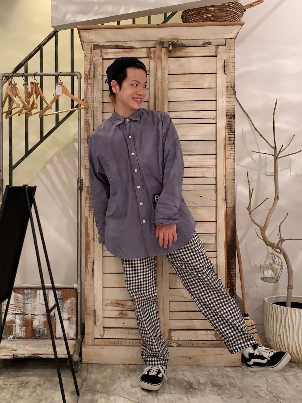 河崎良侑(りょう)のニットキャップ/ビーニー「オリジナルス ニットキャップ [BEANIE BADGE]」を使ったコーディネート