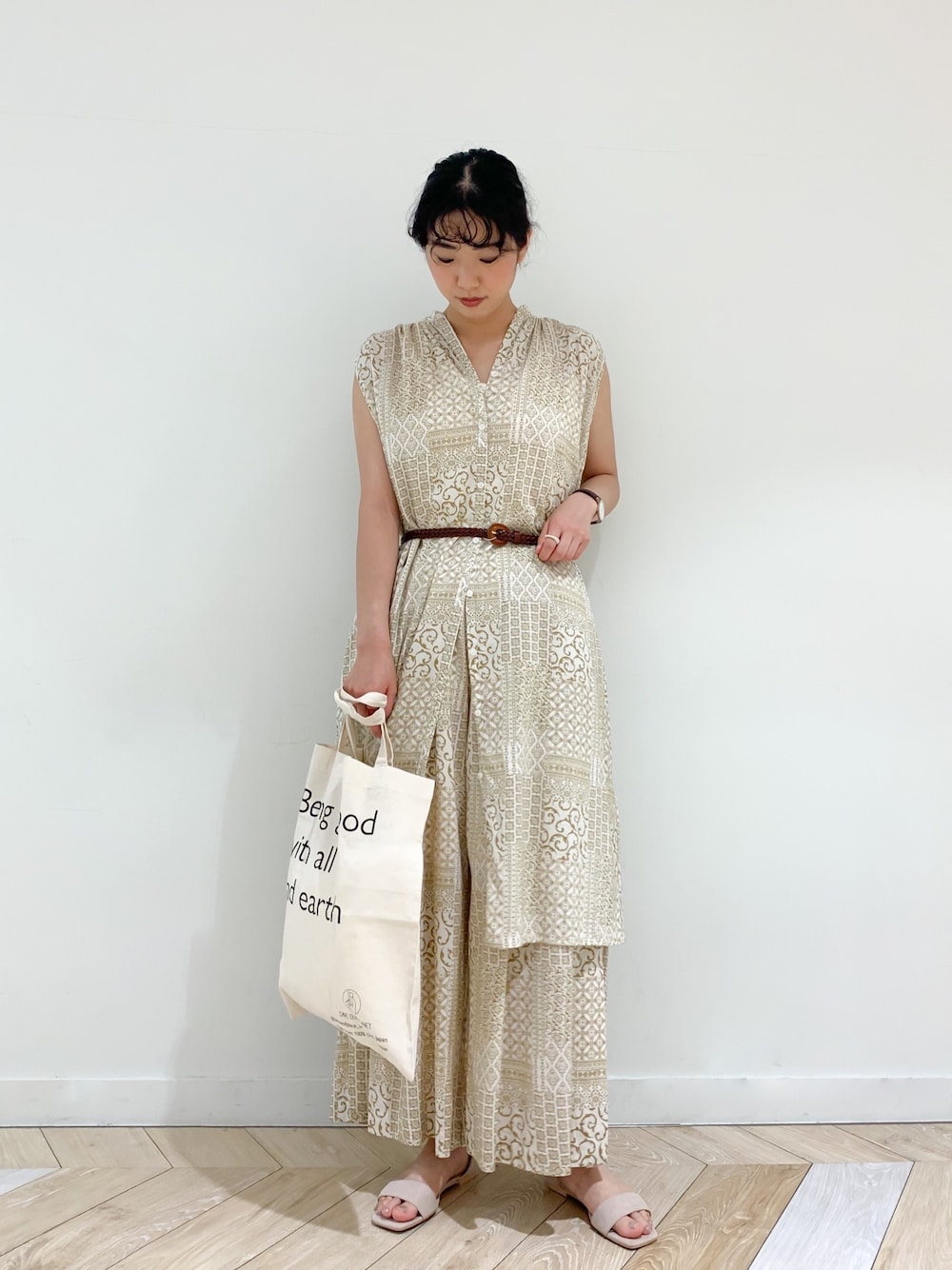 おさやのワンピース「エスニックプリントワンピース」を使ったコーディネート