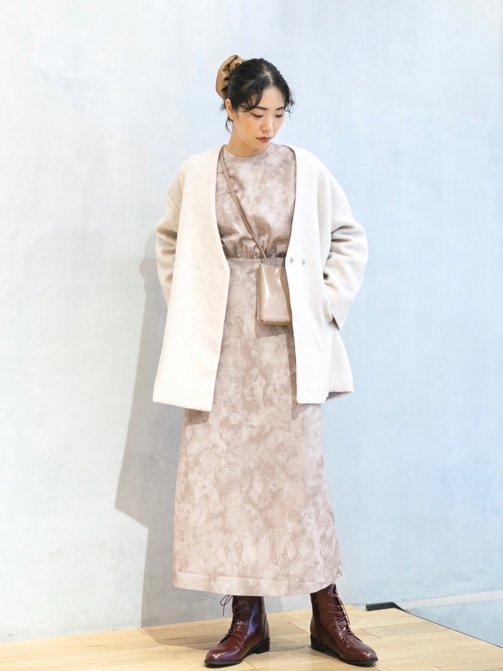 おさやのワンピース「ショルダータックマーブルワンピース」を使ったコーディネート