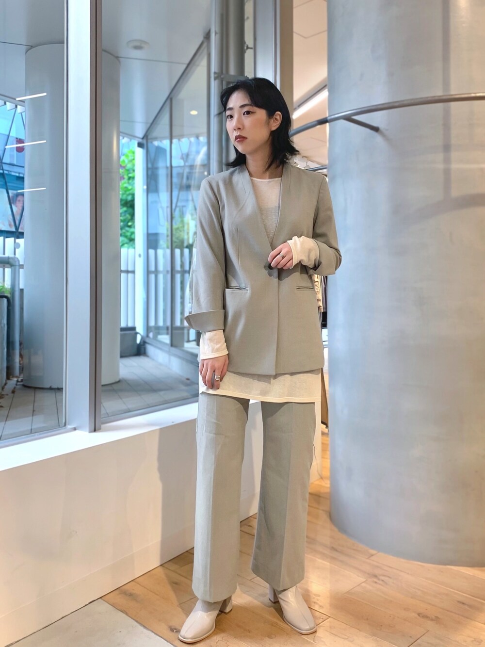 ジャケットのセットアップに シアーのルーズ丈インナーをレイヤードさせ小慣れ感をプラス○ Instagram ⇒@sense_ohsy